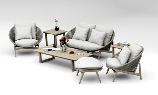 7 Piece Robas Lounge Set: Sofa, Lounge Chairs, Ottoman with Sema Accent Tables (Weathered Teak)