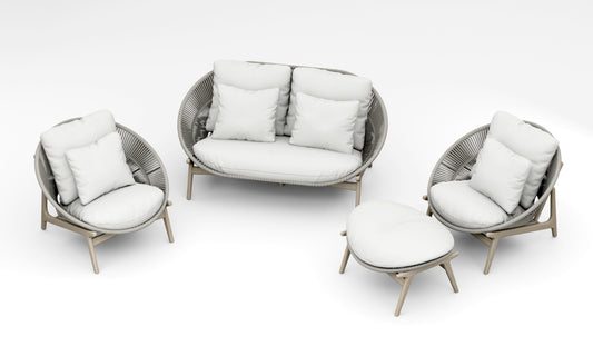 4 Piece Robas Lounge Set: Sofa, Sofa Chairs with Ottoman